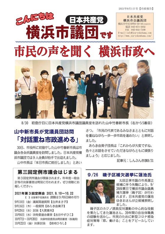 市民の声を聞く 横浜市政へ 2021.9.1号